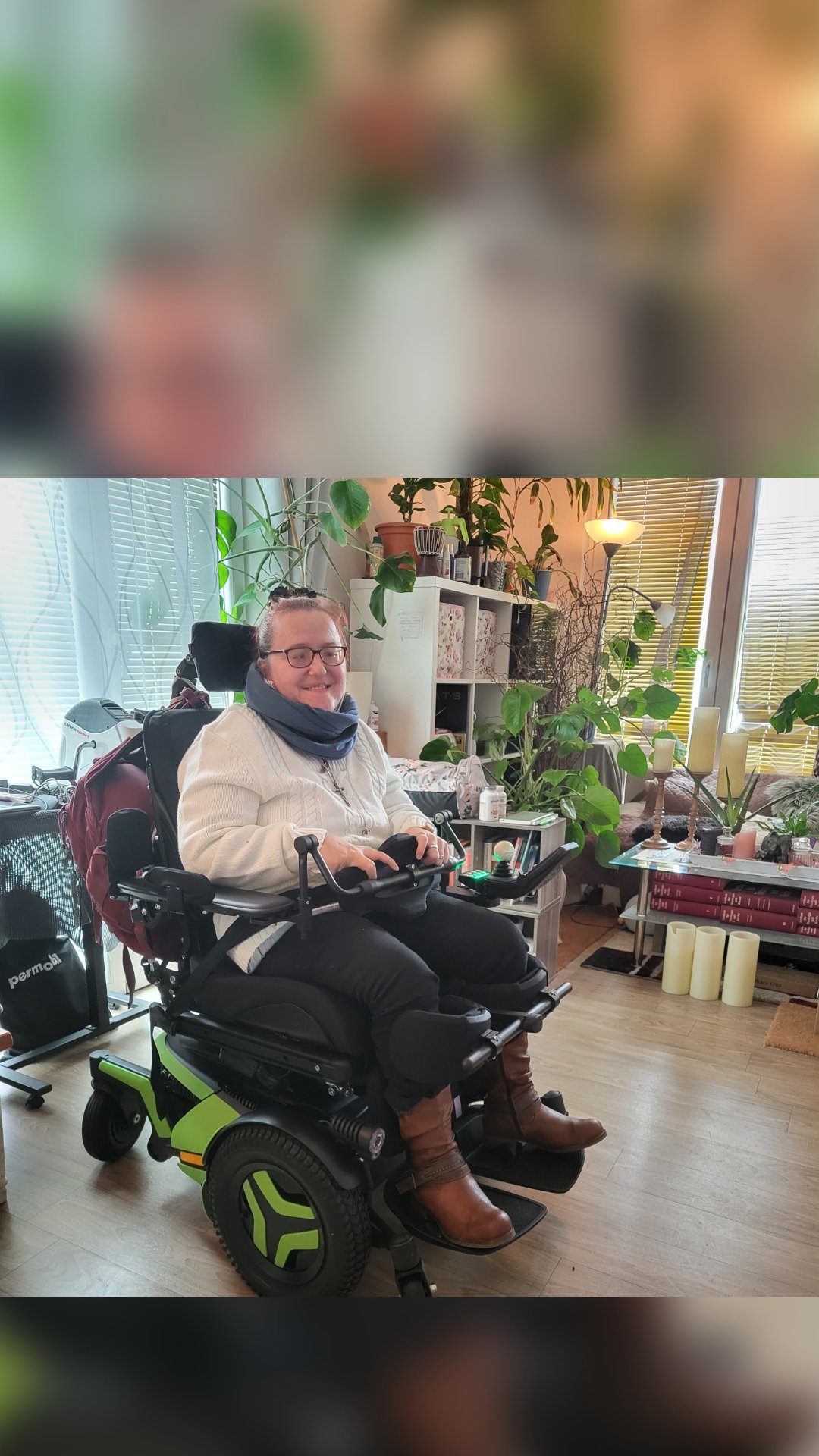 Der neue E- Rollstuhl ist da.